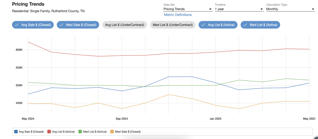 This is truly an interesting market right now. We are finally seeing a very slight drop in the overall price level. It’s hard to see because of the way our system is set up for analytics. I will do my best to show you. I will also say that anecdote definitely supports the point. In addition to what I can show you in the graphs below, one area that unfortunately is not accurately tracked is seller concessions to buyers–closing costs, title expenses, home warranties and repairs. These are absolutely back in the market and very widely used. I would say that 80+% of the deals I am seeing have some kind of concession (besides commission) in them. This is great news for buyers and not the worst news for sellers. The harder news for sellers is the length of time it takes to sell. Days on market are still creeping up. In some submarkets–$550-$650k in Rutherford for example, DOM can easily top 60 days. This feels like an eternity when you are trying to sell in order to buy something else.